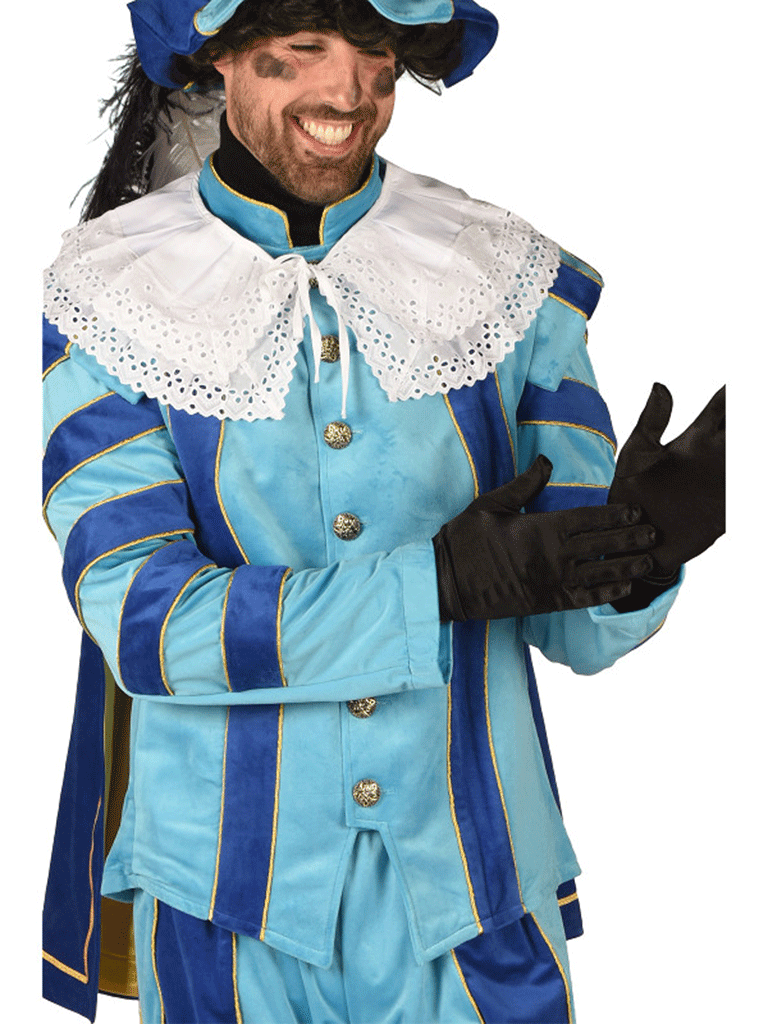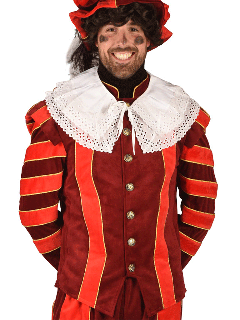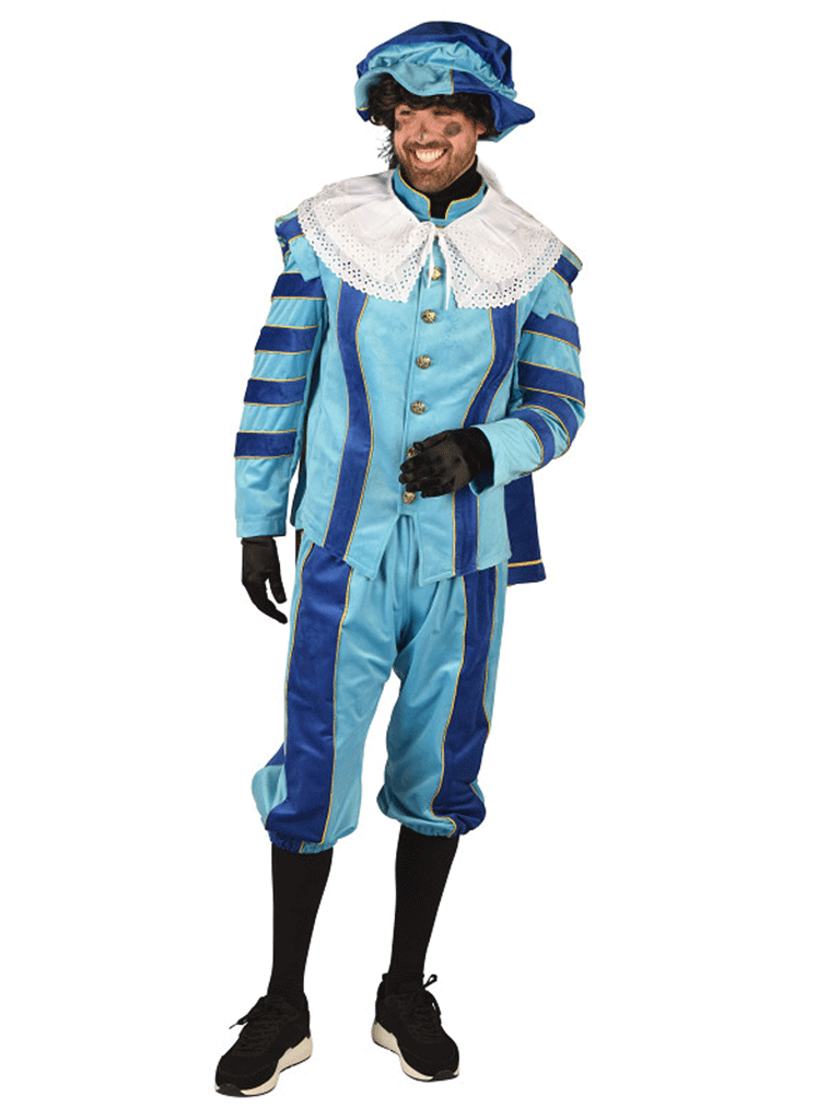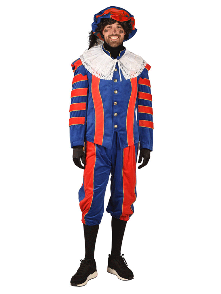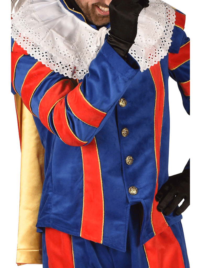 Luxe pietenkostuum met mooie pofmouwen en cape, dit kostuum bestaan uit een comfortabel 2-delig kostuum met elastiek in de band uitgevoerd in vrolijke kleuren, sierlijk afgewerkt met bijpassende pet. Dit kostuum is geschikt om te dragen voor dames en heren.