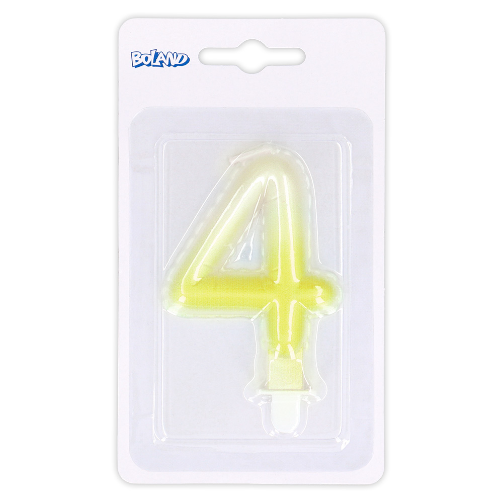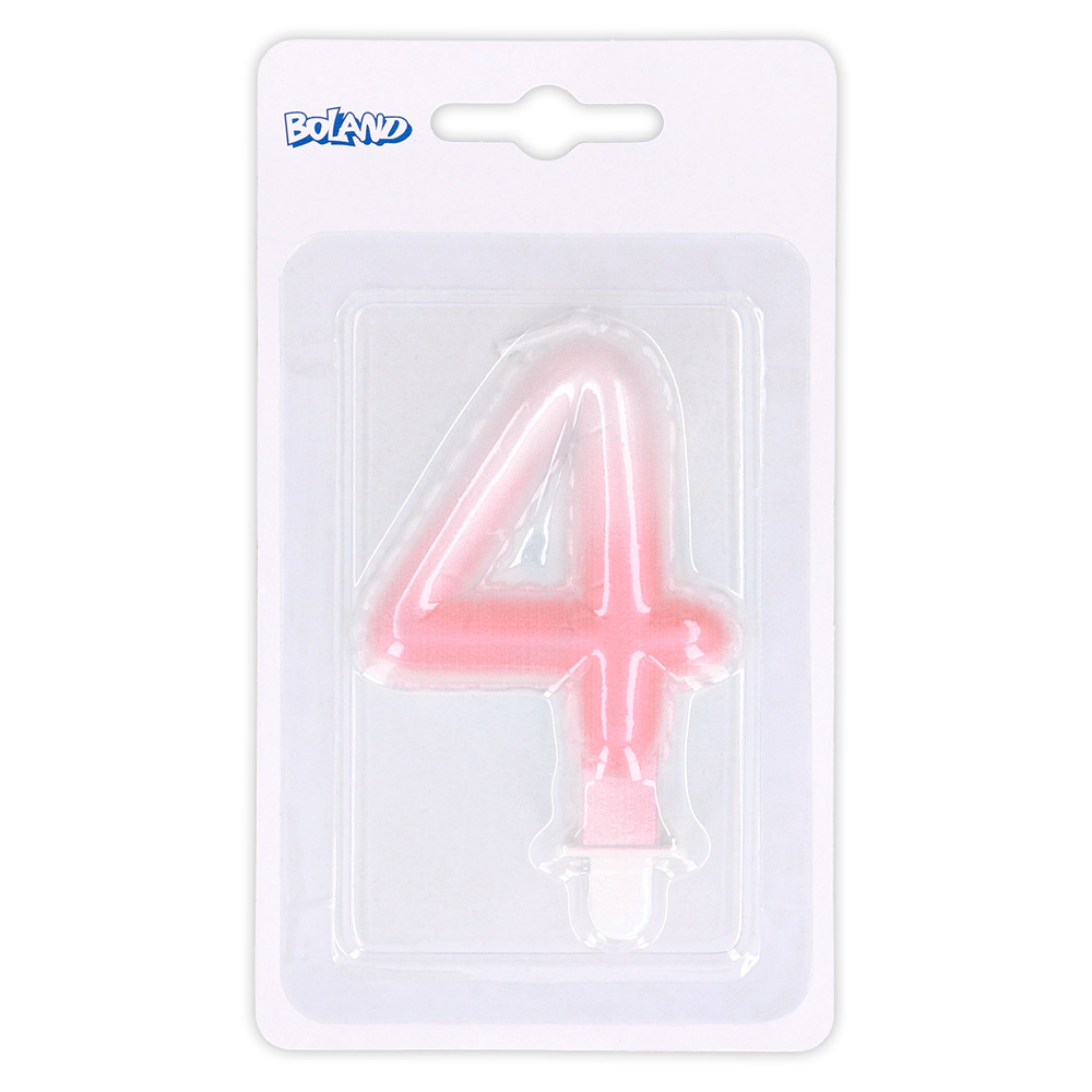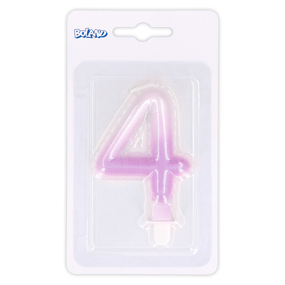 Kaarsje cijfer '4' pastel met houder (4 ass.)