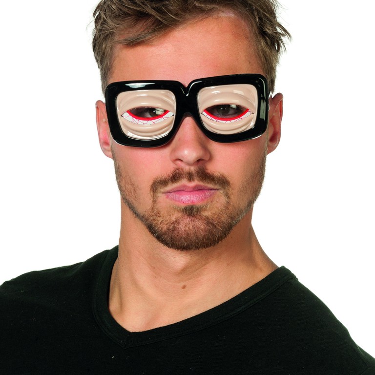Bril met gekke ogen en wallen onder de ogen in de kleur naturel.
