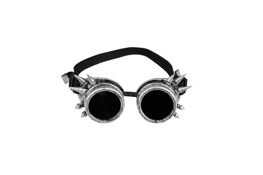 Mooie zilveren steampunk bril met spikes.