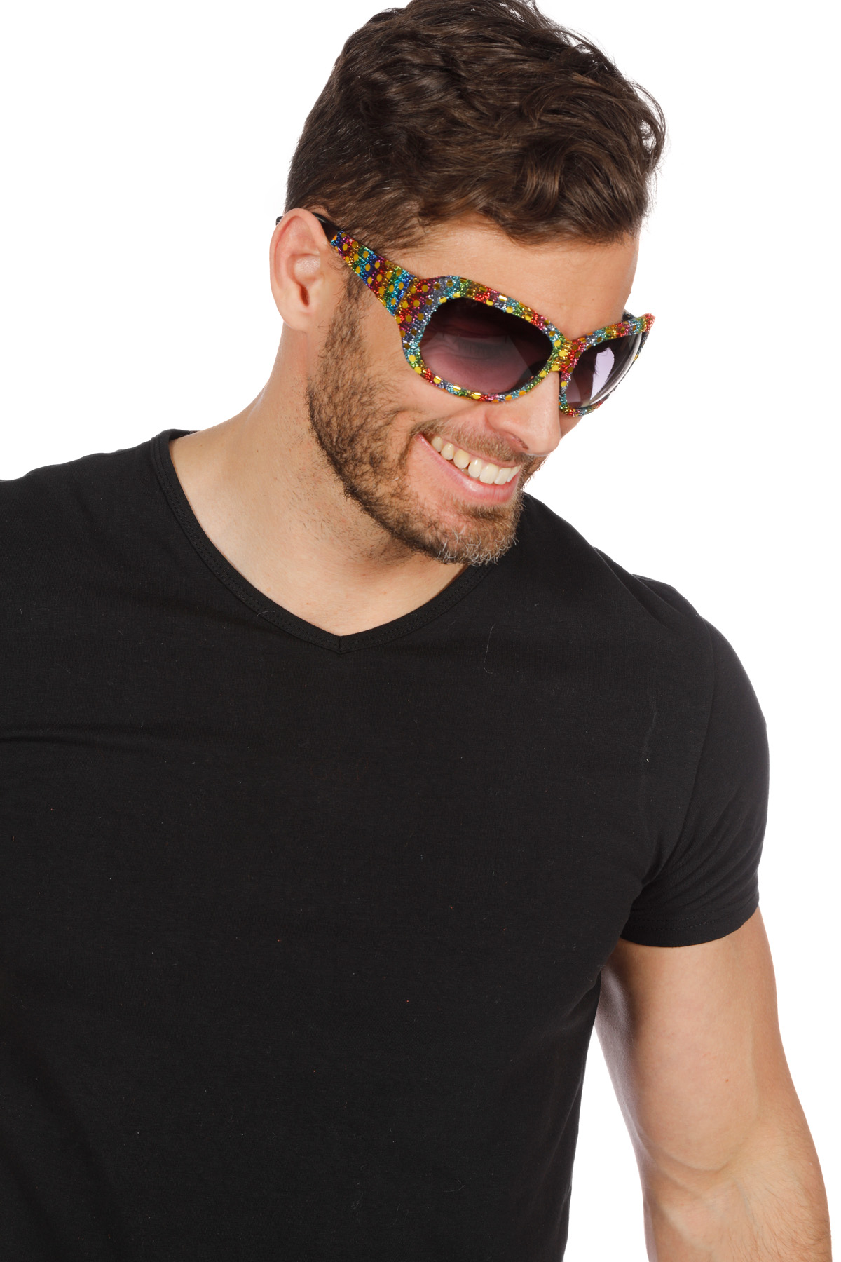 Stoere bril met leuk motief/pailletten, in de kleur zilver.