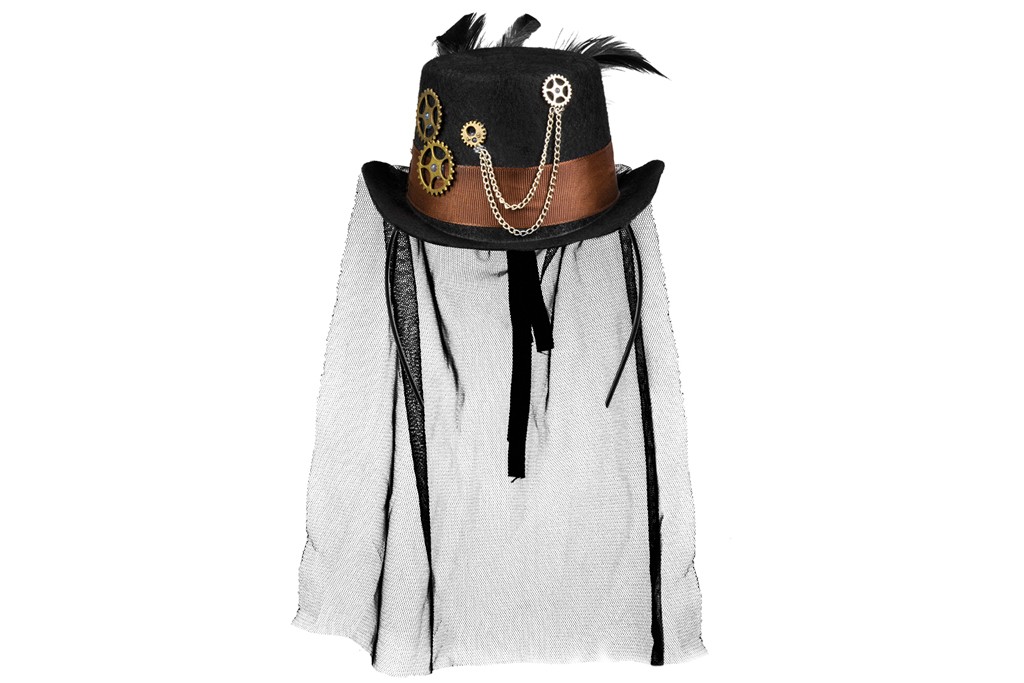 Tiara met steampunk hoedje en sluier.