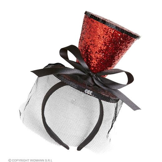 rode mini hoge hoed met sluier