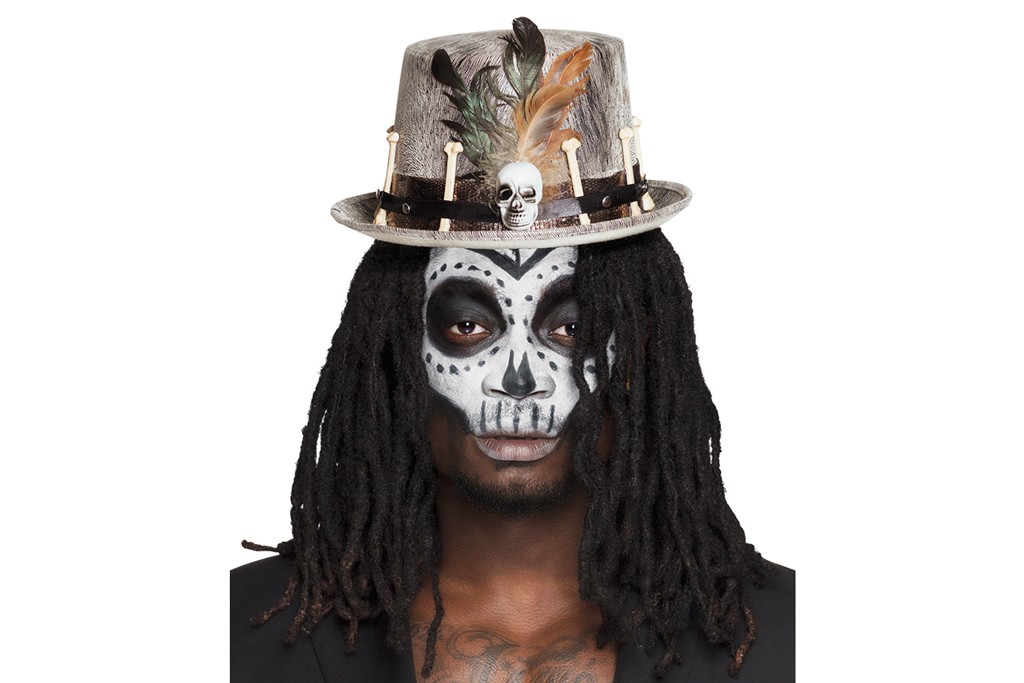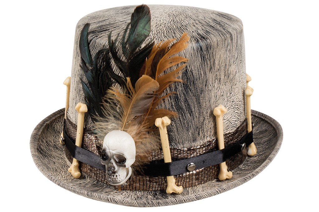 Voodoo hoed, mooi afgewerkt met veren en botten.