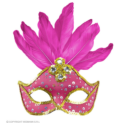 oogmasker brazilie met veren en parels, neon rose