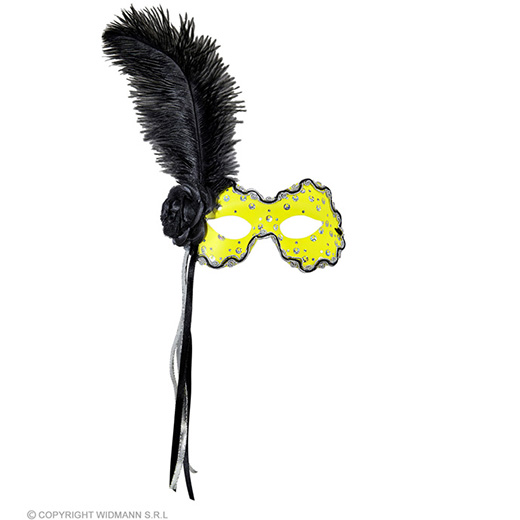 oogmasker brazilie met veren, neon geel