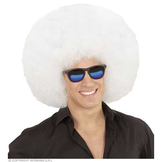 pruik, afro extra groot wit