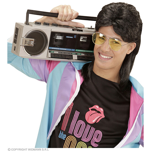 pruik, mullet met bril zwart