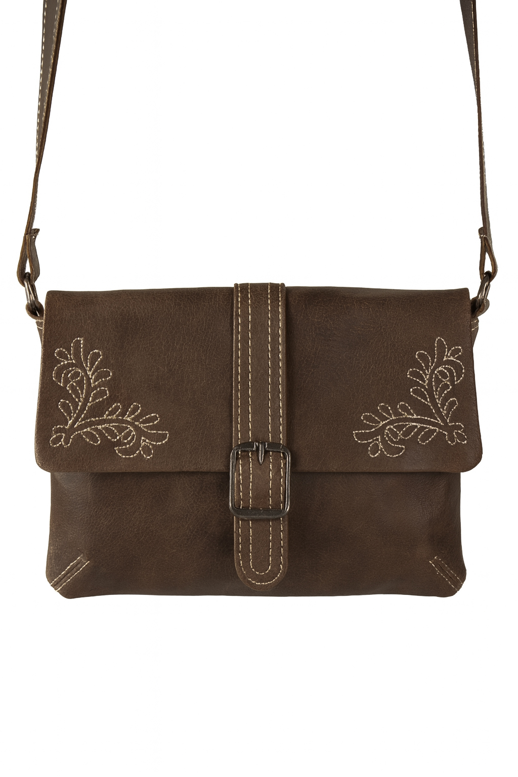 Bruin lederen tasje Oktoberfest Style met traditionele stiksel.
