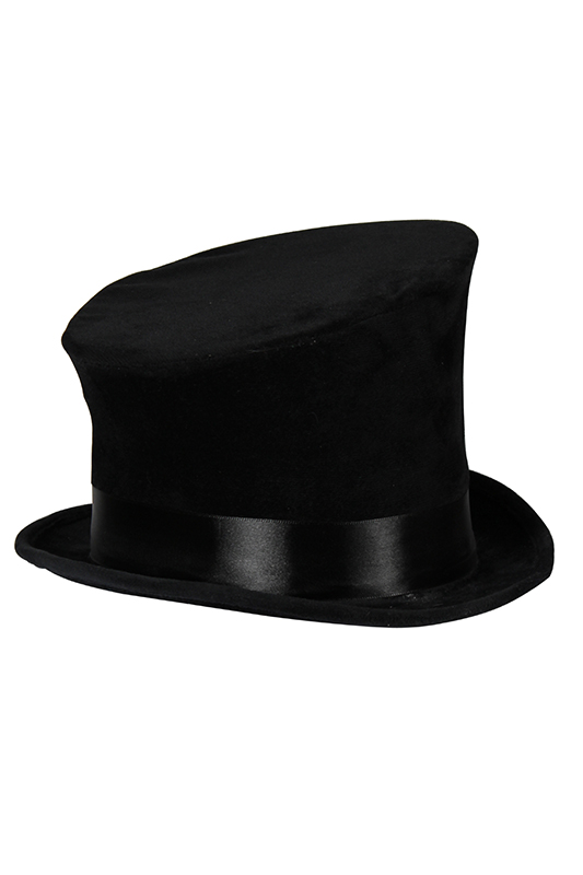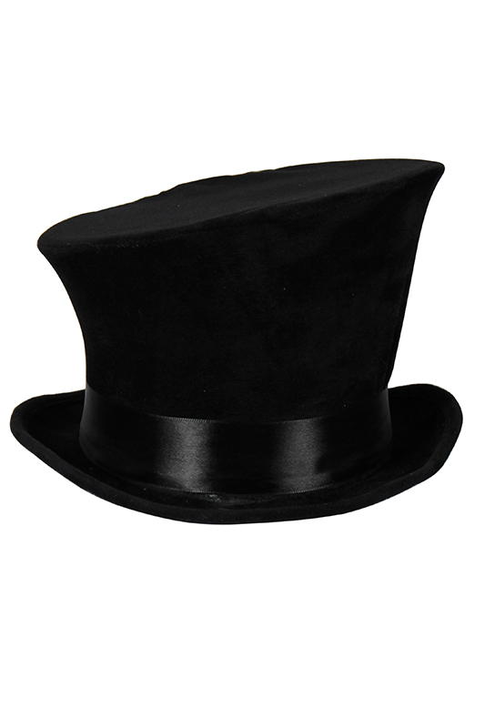 Mooie Hoge hoed met leuk detail dat een kant schuin loopt.