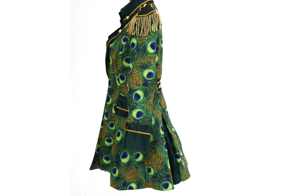 Luxe damesjasje met pauwenprint, zeer luxe afwerking.