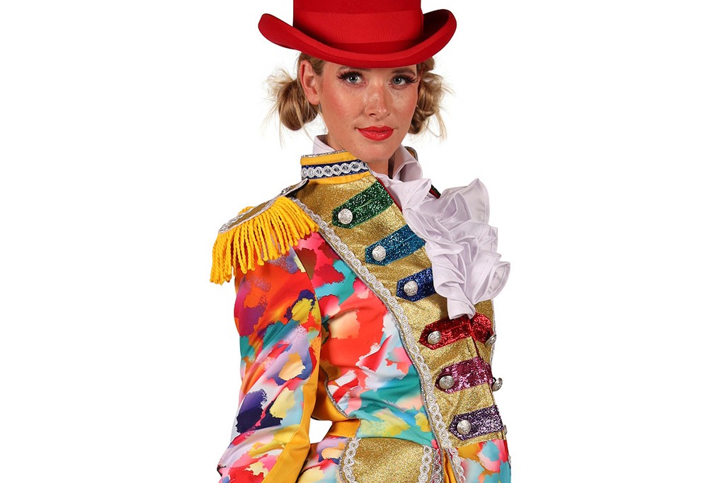 Deze luxe carnavalsjas is een super kleurijke en vrolijke jas. De jas is op verschillende manieren te stijlen met bijvoorbeeld een petticoat of een kleurrijke legging of broek.