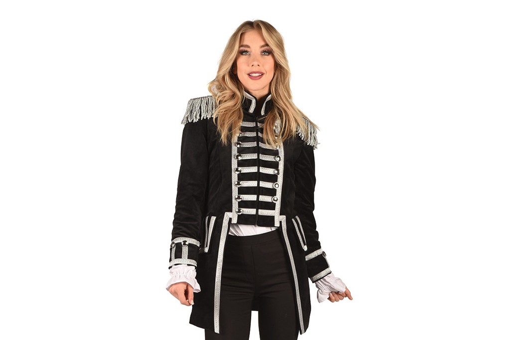 Luxe zwarte carnavalsjas die op verschillende manieren te stylen is.