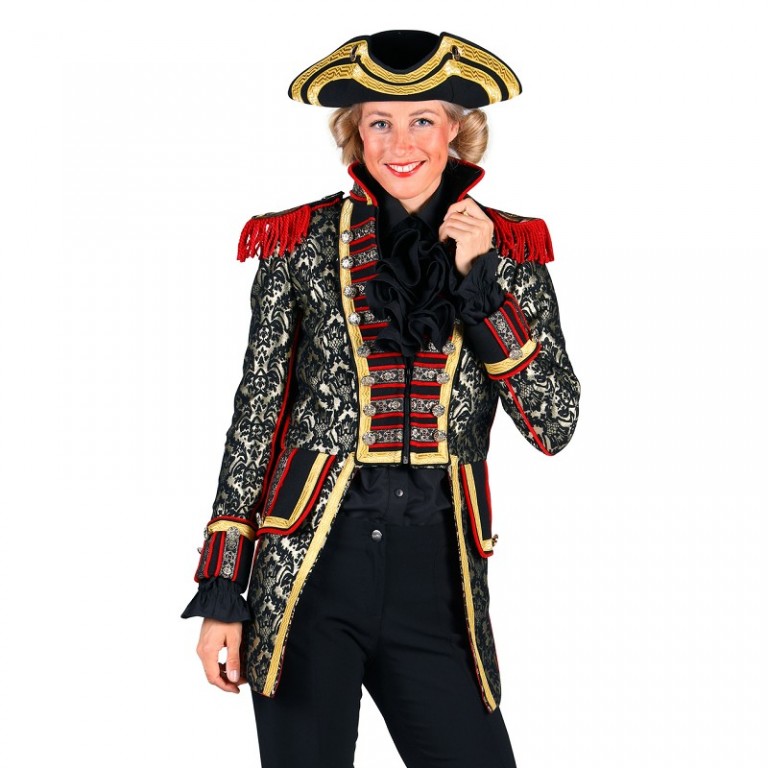Deze luxe piratenjas is gemaakt van hoogwaardig materiaal en rijk afgewerkt met mooie knopen, decoratieve biezen en stijlvolle manchetten. Deze dames piratenjas heeft een klassieke, lange snit die perfect past bij elke piraat. Mooi te combineren met een piratenhoed, en luxe jabotblouse voor een complete look die gegarandeerd opvalt tijdens de carnaval of op een piratenfestijn.