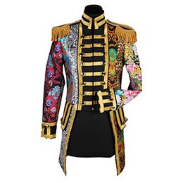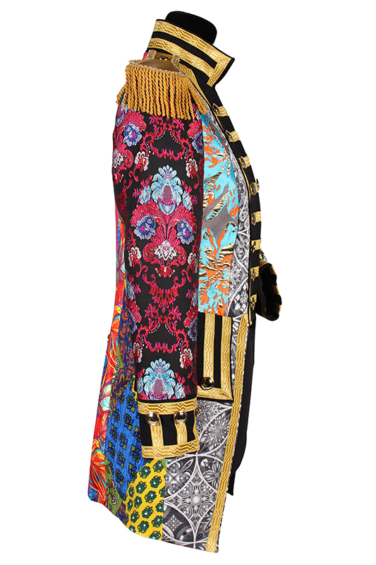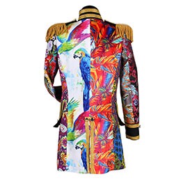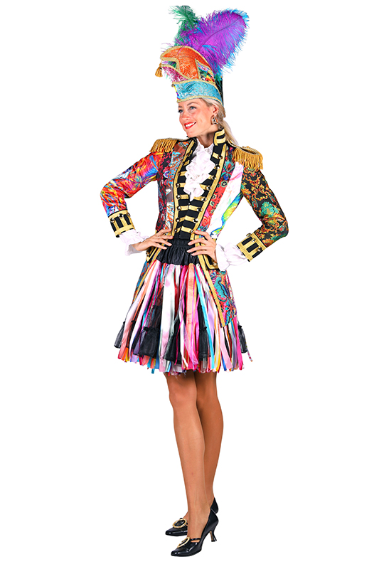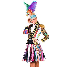 Deze prachtige carnavalsjas heeft een originele look, door de mix van verschillende stoffen en kleuren is geen jas hetzelfde!
