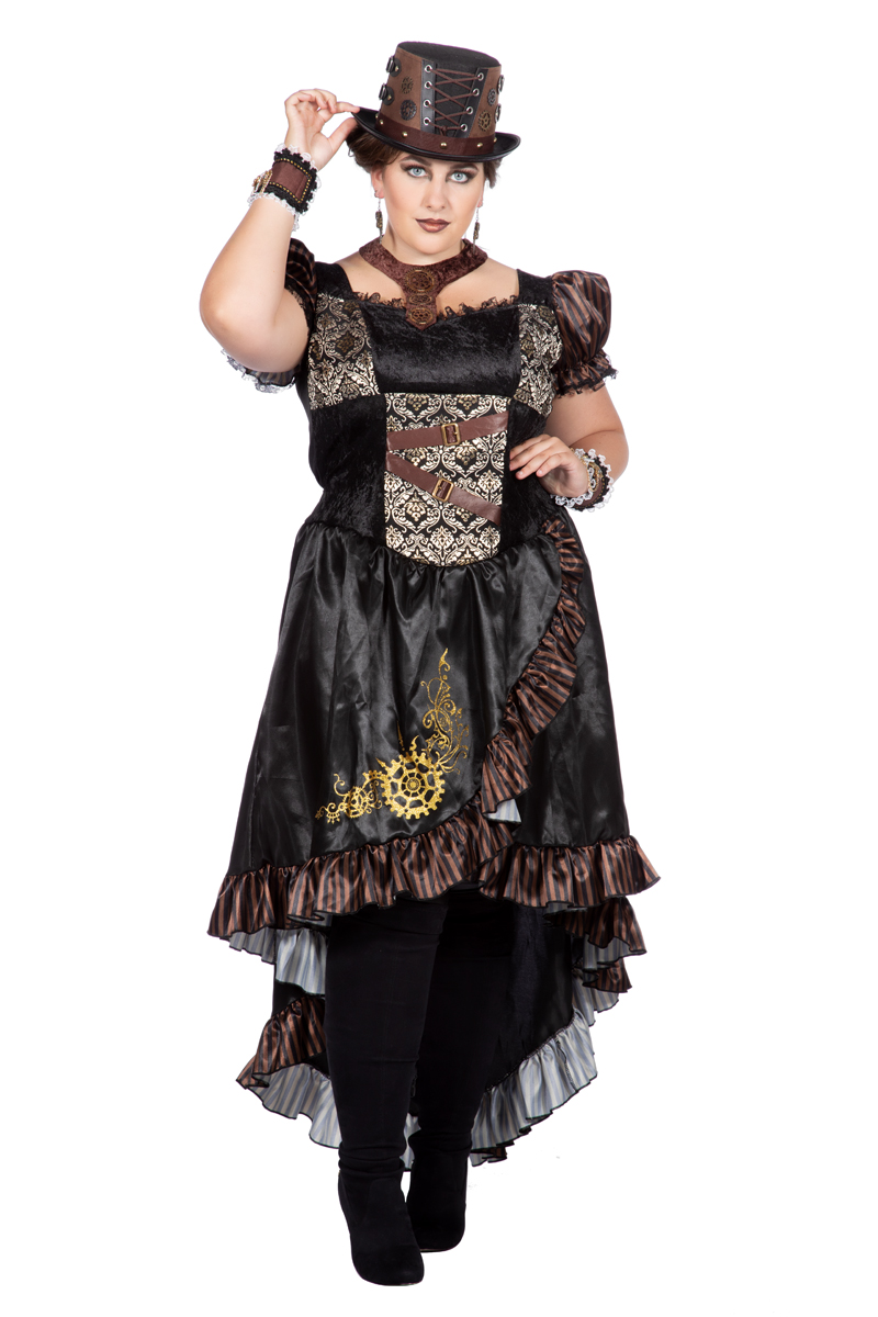 Steampunk jurk luxe zwart bestaande uit jurk met halsband