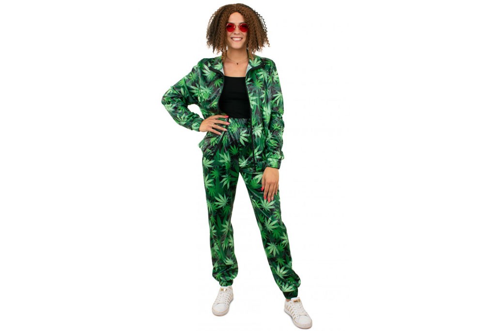 Fout trainingspak voor dames met groene wietprint.