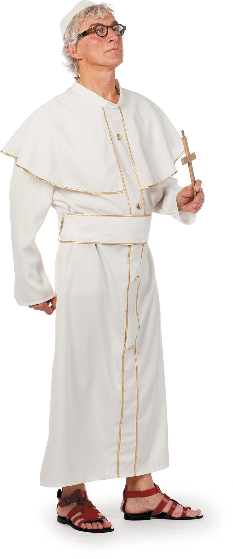 Paus pak voor heren bestaande uit een jurk, riem en muts.