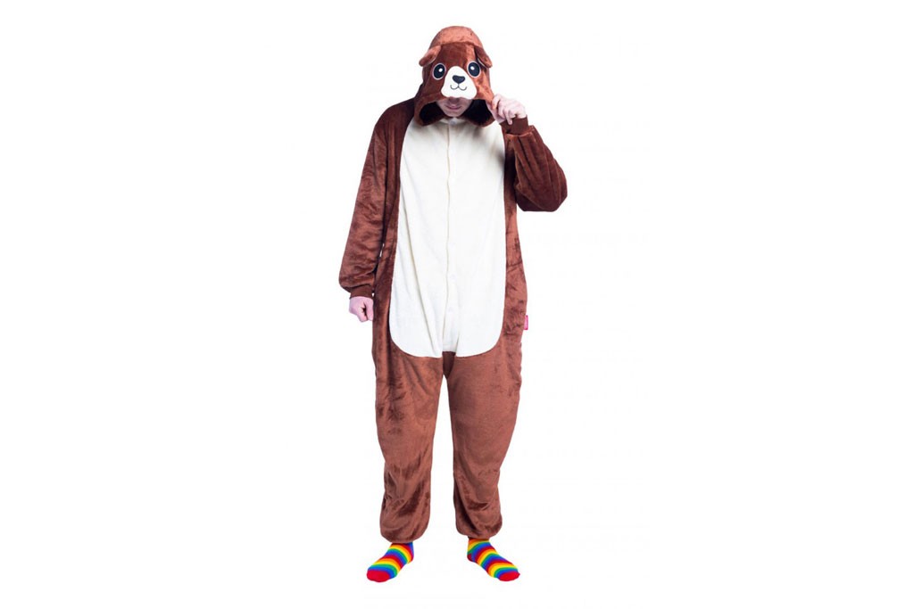 Grappige tekst achterop het kostuum en leuke accessoire op de muts.