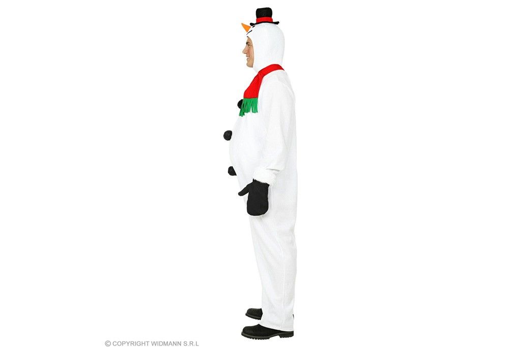 Sneeuwpop bestaande uit een overall met buik, muts, handschoenen en das.