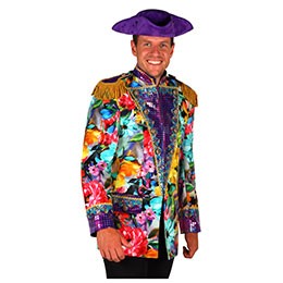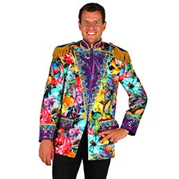 Deze prachtige herenjas is een vrolijke mix van kleuren, echte een eyecatcher tijdens carnaval!