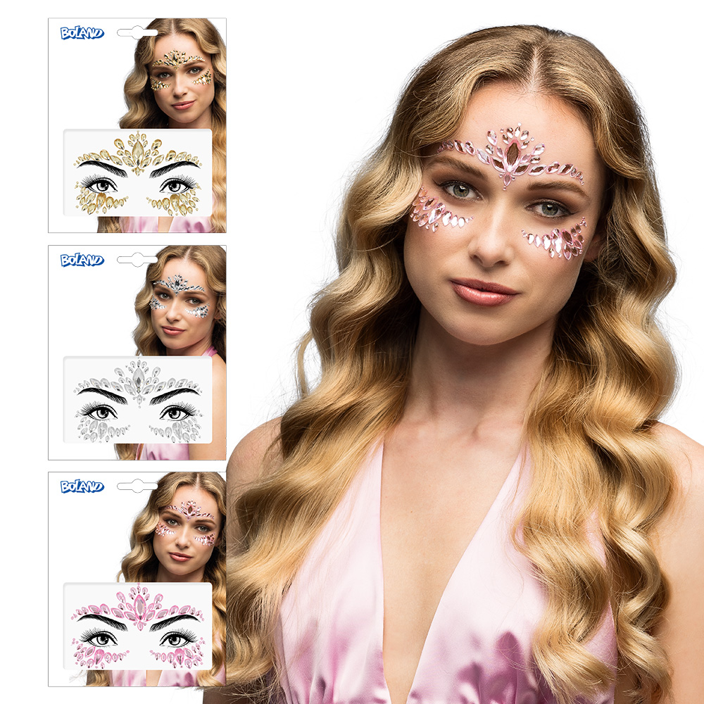 Gezichtsjuwelen plaksteentjes Cordelia 3 kleuren ass.