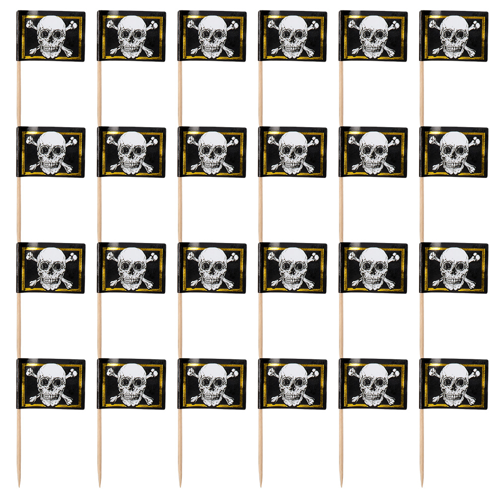 Set 24 Vlaggenprikkers Piraten (7 cm)
