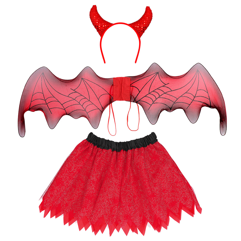 Set Duivel kind (hoorntjes, vleugels en tutu)