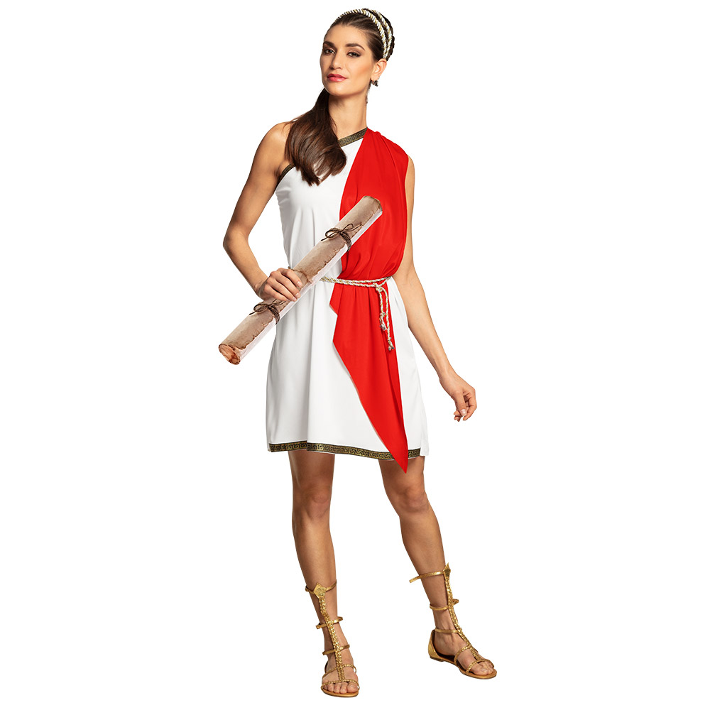 Onderdelen: Hoofdband, jurk met omslagdoek, ceintuur