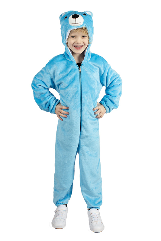 Grappig gekleurd berenkostuum uit zacht materiaal in diverse kleuren uitgevoerd.