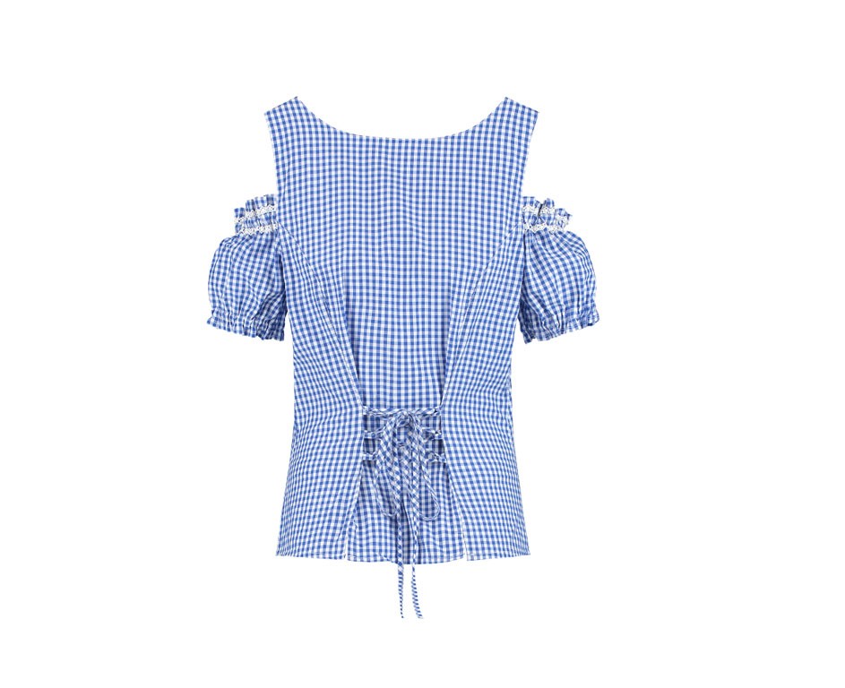 Blouse oktoberfest met schouderbandjes blauw-wit