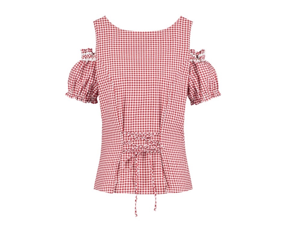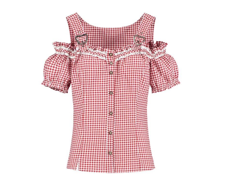 Oktoberfest blouse met schouderbandjes rood-wit.