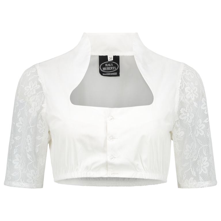 Elegant blousje voor onder een dirndl. Het heeft kanten mouwtjes dit zorgt voor een moderne uitstraling onder de traditinele tirolerjurkjes. 100% katoen dat geeft extra draagcomfort.