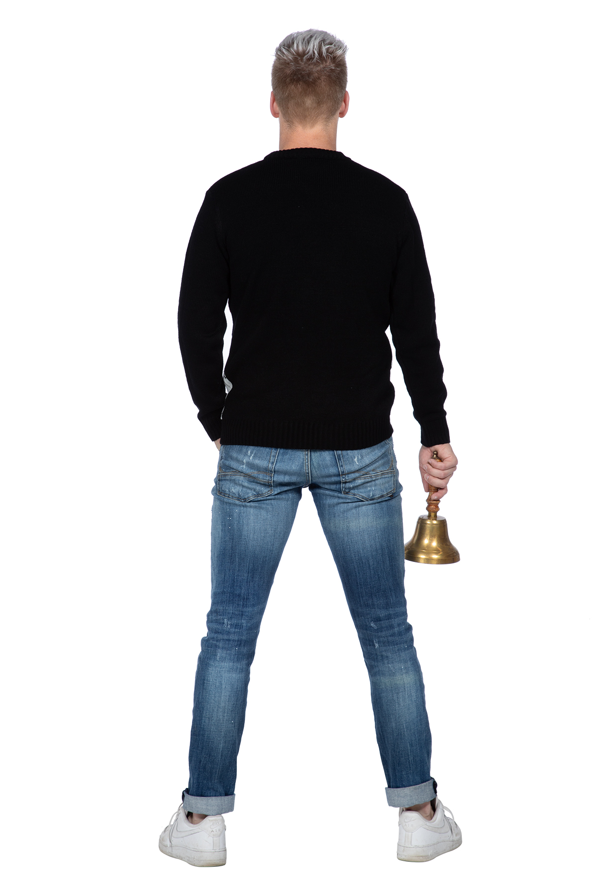 Kersttrui zwart snowboard Santa (netto)
