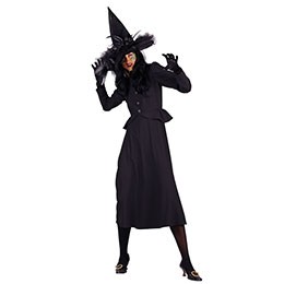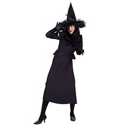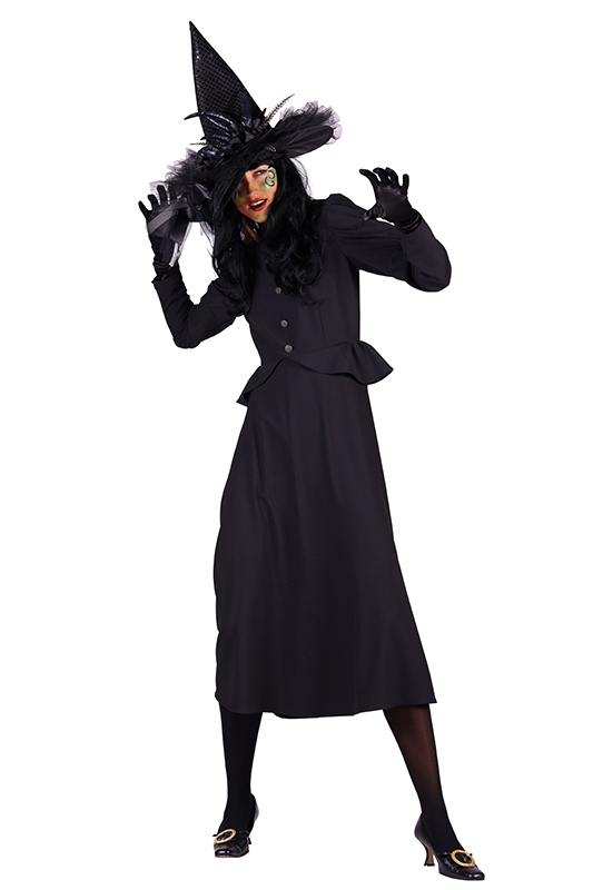 Stap in de wereld van magie en mysterie met deze elegante heksenjurk geïnspireerd op de iconische heks van de film Wicked. De diepe zwarte stof, dramatische snit en klassieke puntige details maken dit de perfecte outfit voor elke heks met stijl.