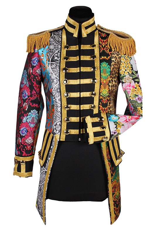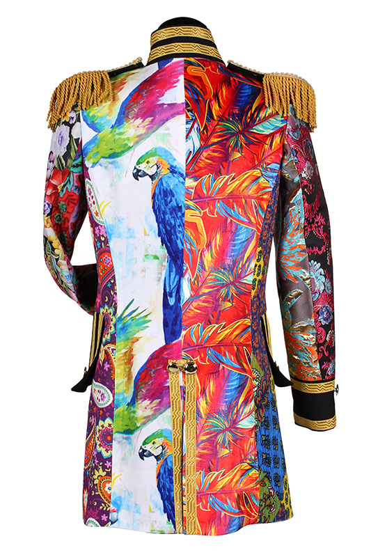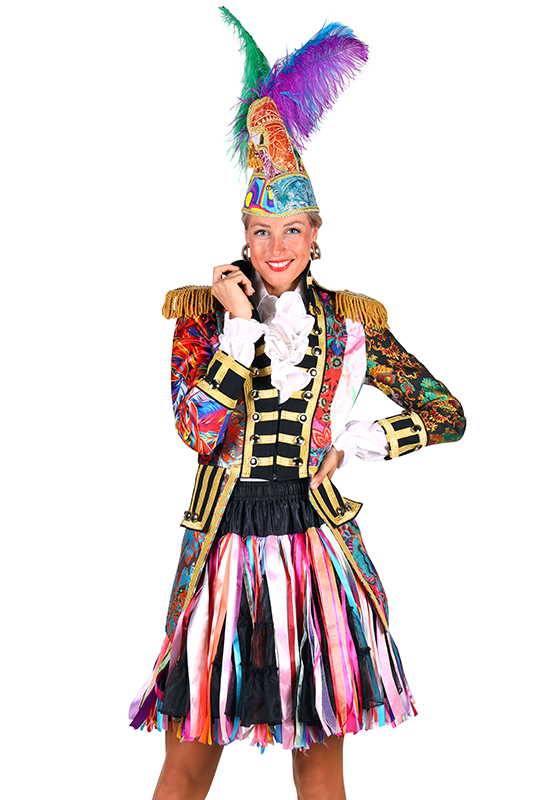 Deze prachtige carnavalsjas heeft een originele look, door de mix van verschillende stoffen en kleuren is geen jas hetzelfde!