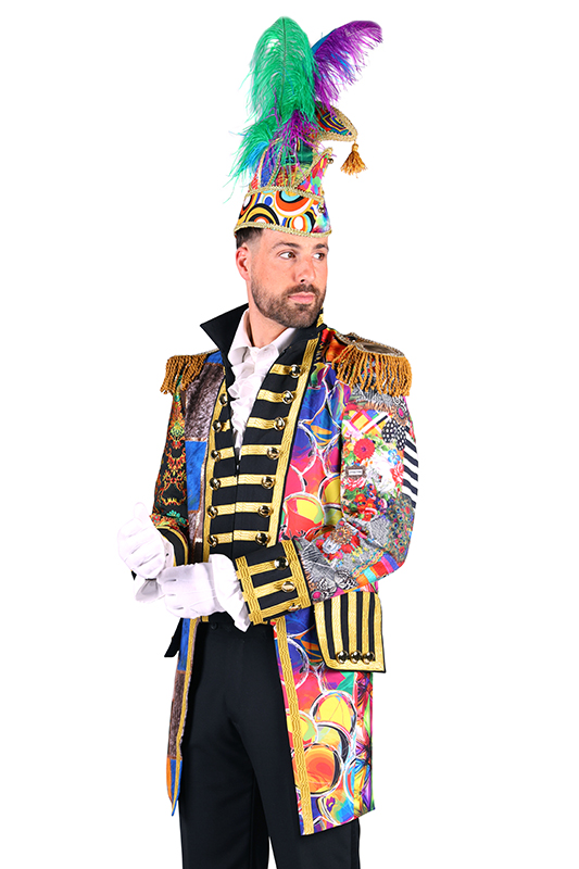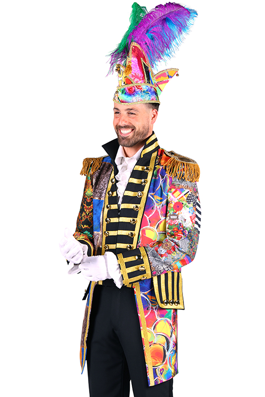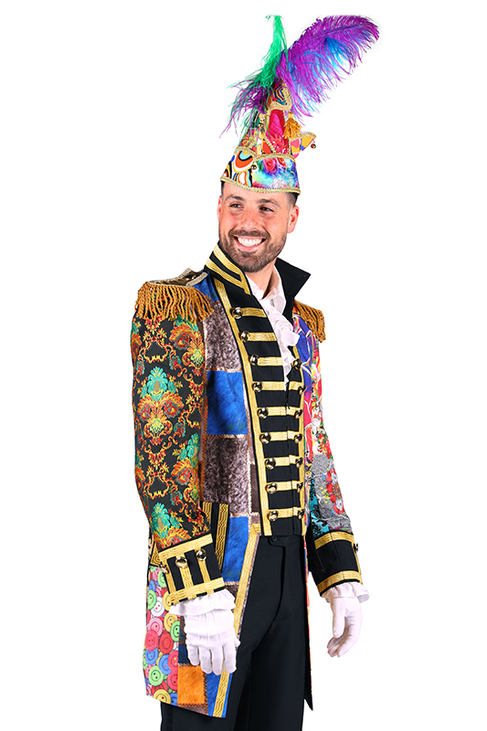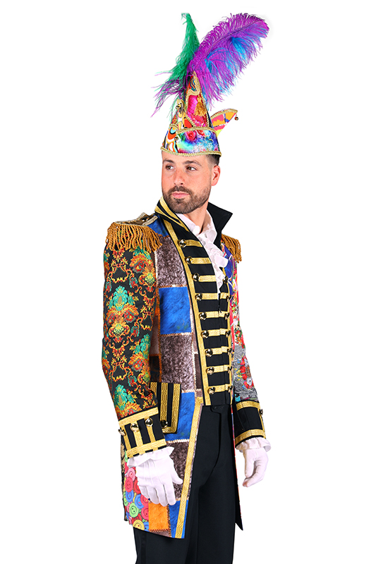 Door de mix van stoffen en kleuren is deze carnavalsjas echt one of a kind, elke jas is anders!