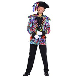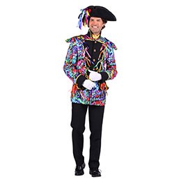 Opvallende carnavalsjas met all over confetti print, tot in detail afgewerkt.