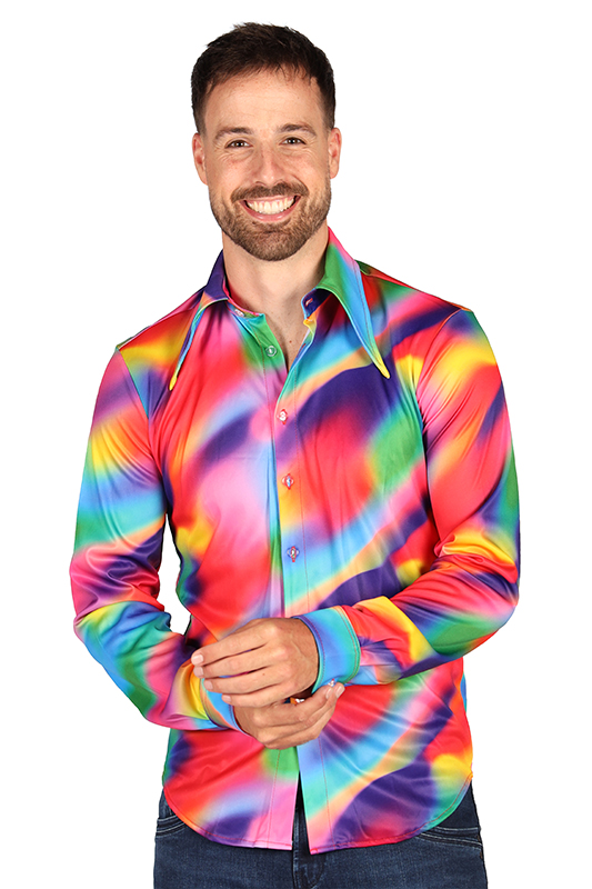 Deze mooie blouse is te dragen op diverse thema feestjes, of het nu een disco, 70's 80's of 90's party is met dit herenshirt steel jij sowieso de show op de dansvloer.