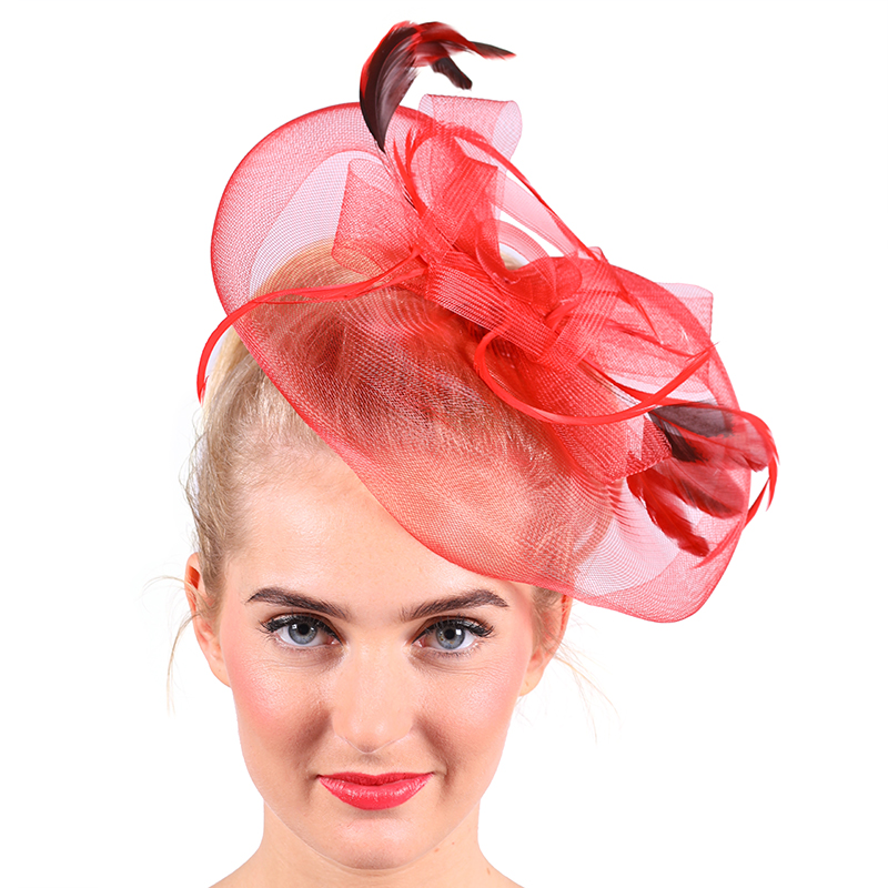 Tule kapje met veren op haarband